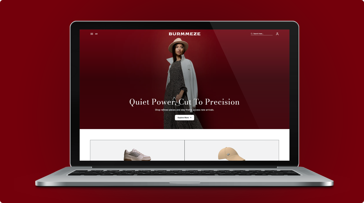 BURMMEZE هي علامة تجارية في مجال الأزياء تركز على مظهر نظيف وفاخر مستوحى من علامات مثل شانيل وديور. قامت TeamX بتطوير نظام تجارة إلكترونية متكامل للعلامة، بما في ذلك موقع إلكتروني ثنائي اللغة (الإنجليزية والعربية) وتطبيقات للهواتف المحمولة على نظامي iOS وAndroid.