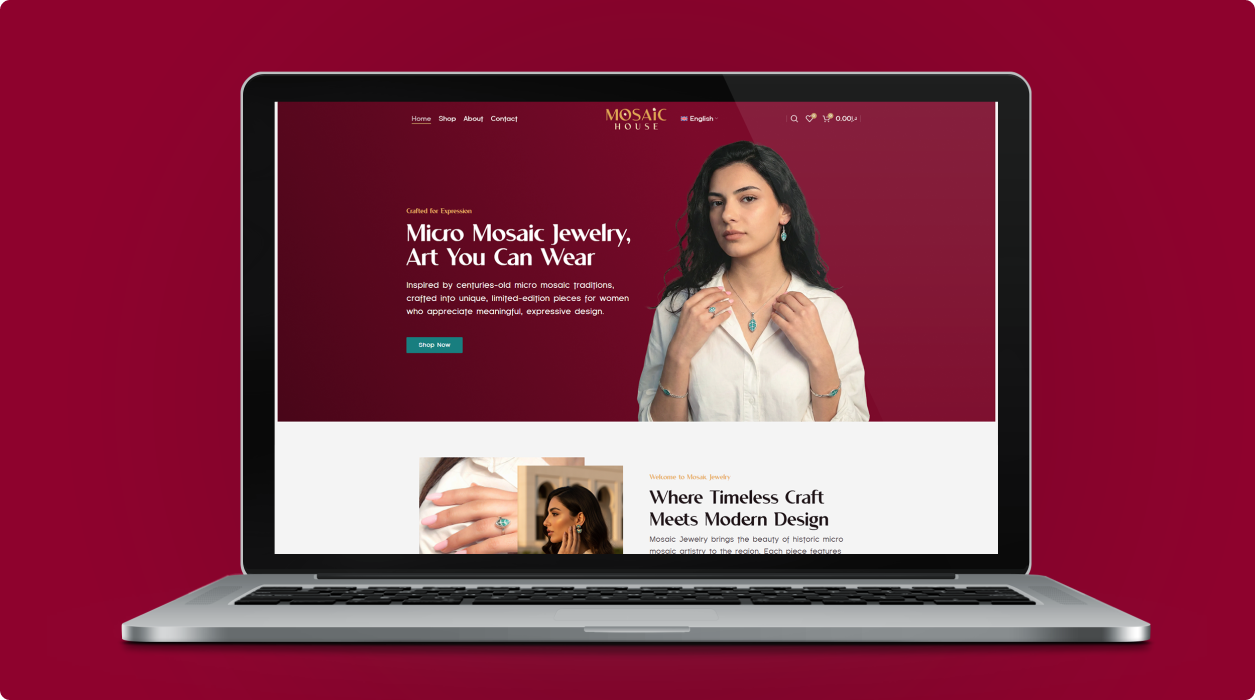 The project began with brand identity development, including logo and visual direction. Once the design style was defined, the website interface was created with a clean, product-centered layout.